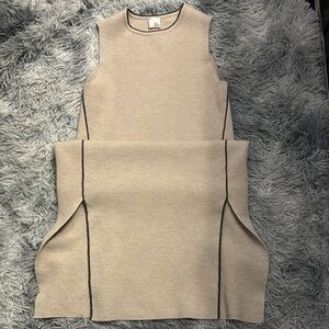 IRIS & INK Cream Sheath Dress Sleeveless Crew Neck