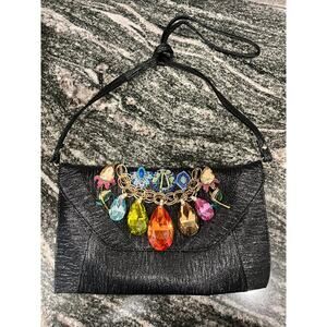 IRIS LANE EVENING BLACK CLUTCH WITH MULTIOLOR RHINESTONES & GEMS