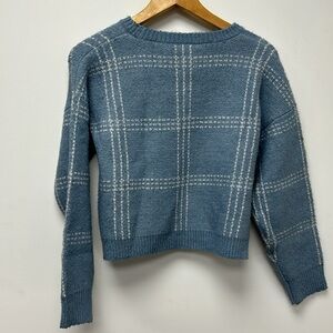 IRIS Light blue short sweater with white stripes, very warm size M The checkered design with white dotted lines makes it a classic to light pilling or minor pilling
