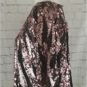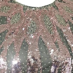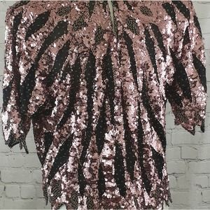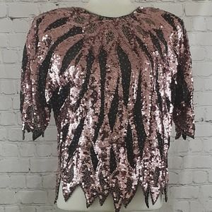 IRIS Sequined Beaded Sheer Pink Black Vintage Slip On Blouse Size Small