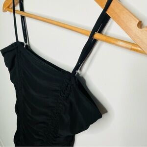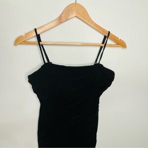 IRIS | Sexy Ruched Bow Tie Straight Neck Spaghetti Strap Spandex Sculpting Mini Dress