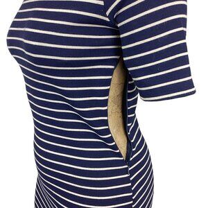 IRIS Striped Short Sleeve Sexy Bodycon Dress Asymmetric Hem Crew Neck Sz M 250B