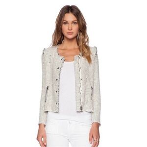 IRO Agnette Distressed Tweed Jacket Black White SZ 6