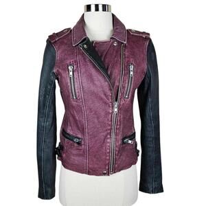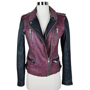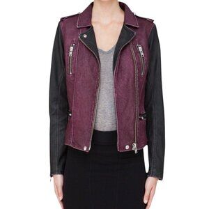 IRO Anabela Colorblock Leather Moto Jacket $1,250 Black & Bordeaux Size XS/2