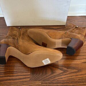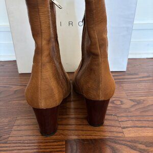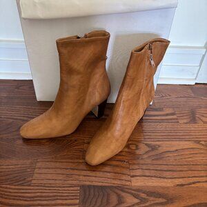 Beautiful leather camel colored ankle booties from IRO. I purchased on The Real Real website as final sale, but the boots are too narrow for my feet (I have bunions), so I've never worn them. They are in pristine condition. Semi-pointed toes, concealed zip closure at sides.