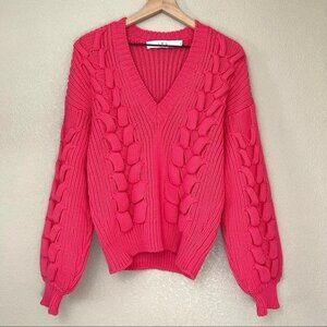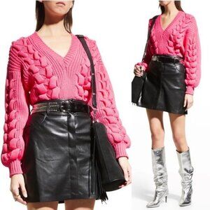 IRO Arwy Chunky Cable Oversized V-Neck Sweater L 3D Knit Bubblegum Pink