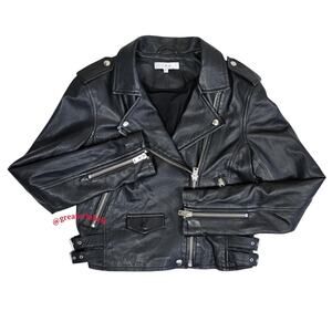 IRO Ashville Black Lambskin Leather Moto Jacket $1200 Size US 10 EU 42