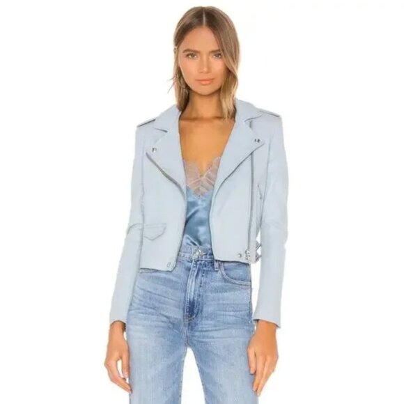 IRO Ashville Cropped Leather Moto Biker Jacket in Summer