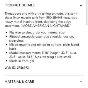 IRO Atimo Muscle Tee Linen Graphic Print Tank Top Crew Neck Tshirt Rose