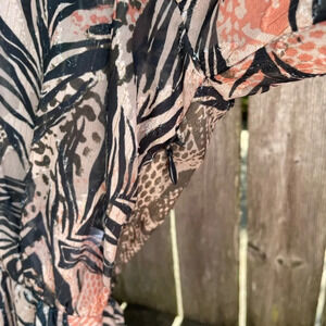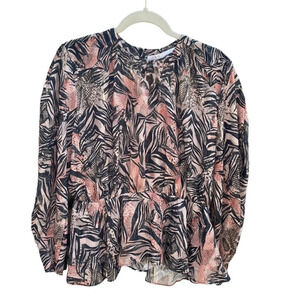 Pre owned like new. Gorgeous peach and black peplum blouse. Has side zipper. IRO size 40 = US womens 8.
