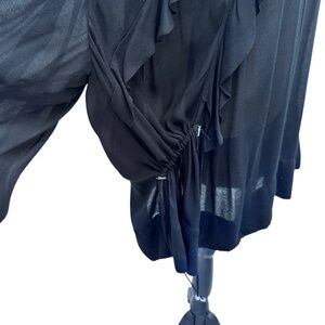IRO black Birlie ruffled oversized top. Variations in color are due to lighting. There are pulled threads on the back left side above the drawstring. See photo. Otherwise, in very good preowned condition.