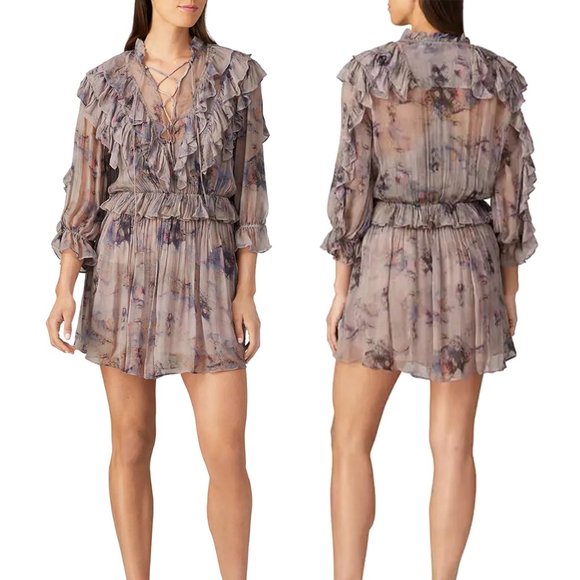 IRO Banon Dress Ruffle Trim Mauve Floral Print Crepe Mini Dress