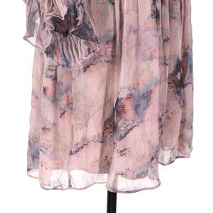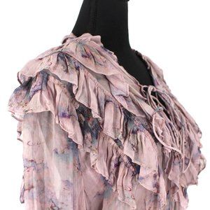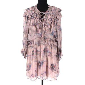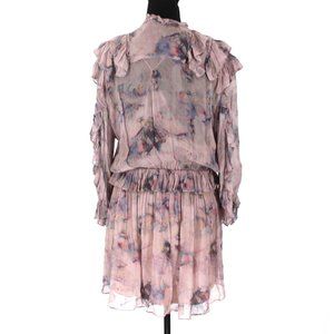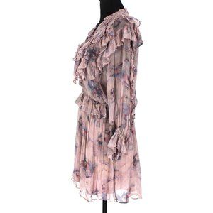 IRO Banon Dress Ruffle Trim Dress 40 Mauve Floral Print Crepe Pleat Mini Medium