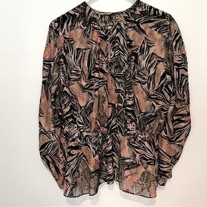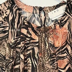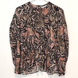 IRO Bardes blouse, IRO Paris top, peplum blouse, long sleeve abstract print top, designer blouse, neutral print top, Paris fashion, statement blouse, modern boho blouse, elevated casual top