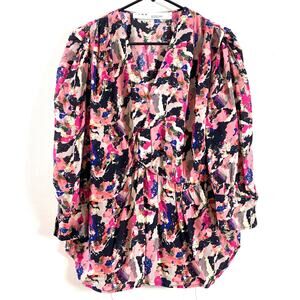 IRO Bixie Wrap Effect Abstract Watercolor Abstract Blouse Shirt Pink Size 38