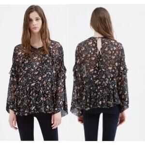 In good preowned condition. Semi-sheer but has a sort of double-layer built-in lining in the front. Wide sleeves.
