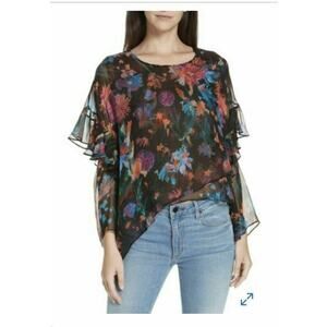 IRO Black Silk Floral Ruffled asymmetrical Tunic Blouse Top size 40 - 8