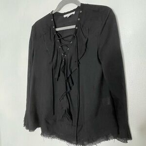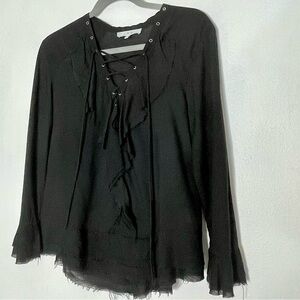 IRO Black Lace Up Boho Ruffle Finley Blouse. Size XS