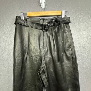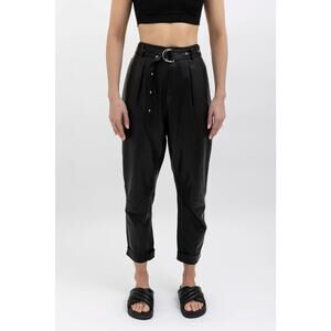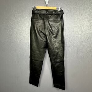 Sleek black leather pants. Ankle length with a stylish belt. Perfect for a chic look.