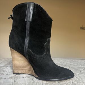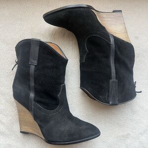 IRO Black Suede Leather Wedge Heels Ankle Boots Women EU 36 US 5.5 - 6 Western