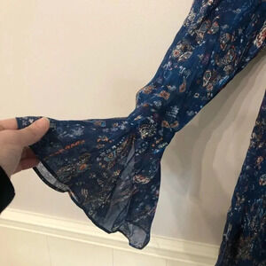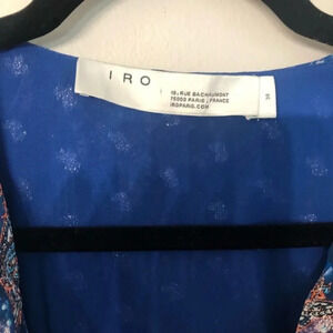 IRO Blue Floral Ruffle-Accent Sibuco V-Neck Dress Size 34 XS NWOT