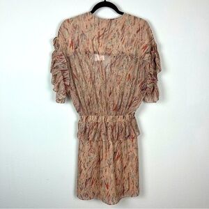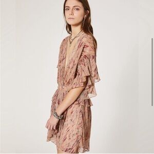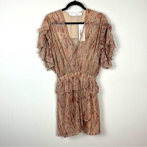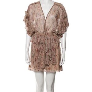 IRO Buoux Metallic Print Ruffle V-Neck Mini A-Line Dress