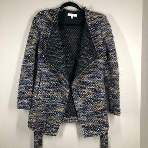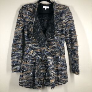IRO Campiaspe Boucle Tweed Belted Wrap Jacket Cardigan, Wool Blend, Has Pockets, Soft Fuzzy Multicolored Yarn, Light Shoulder Padding, In Great Preowned Condition. Women’s Size 38 Or US 6