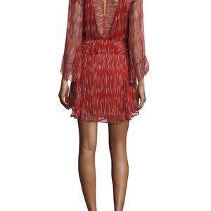 Iro "Canyon" mini dress features a combo-illusion in sheer and opaque printed chiffon.