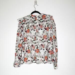 IRO Carus Silk Blend Absract Long Sleeve Ruffle Blouse Womens Multicolor Size 40