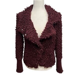 IRO Caty Burgundy Wool Sweater Loop Knit Jacket Women’s Size 40 (US M)