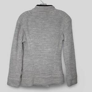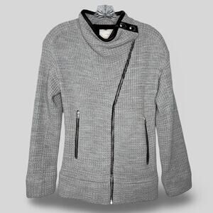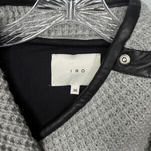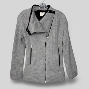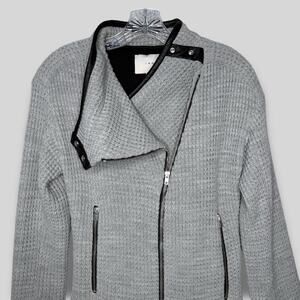 IRO chelane waffle knit jacket. It is thick and structured with an asymmetrical zipper and leather trim.