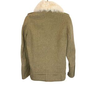 Fabric: 47% Wool, 39% Linen, 12% Polyamide, 2% Cotton; Trim 100% Lamb Fur; Lining 96% Cotton, 4% Lycra; Sleeve Lining 60% Acetate, 40% Cupro; Pockets/Pocket Lining 65% Polyester, 35% Cotton