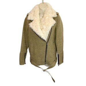 IRO Cidji Shearling Moto Jacket in Brown Wool Blend - Size 2