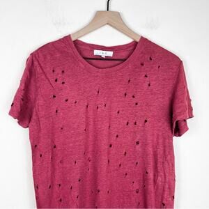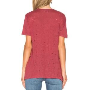 IRO Clay Linen Distressed Short Sleeve Boyfriend Tee in Magnolia Red Size Medium