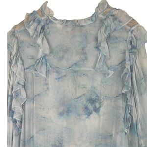 IRO Cruis Light Blue Chiffon Ruffle Blouse Lace-Up Sheer — Size US 2 / FR 34