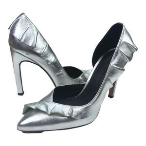 IRO D’Orsay Metallic Silver Ruffled Heels