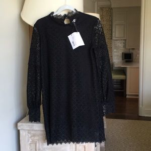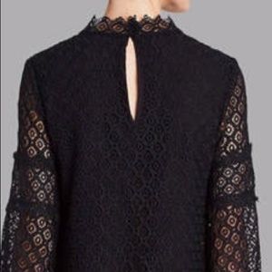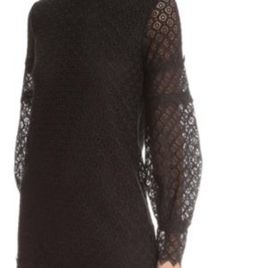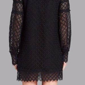 The fully lined long sleeve IRO Kara mini dress has back keyhole buttons closure and buttoned cuffs. This piece is very detailed with a crew neck a Lace overlay