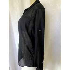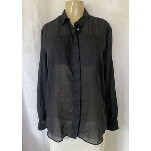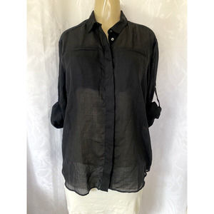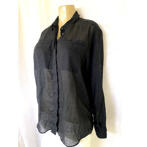 IRO Darcy Wool Gauze Shirt Button Down Black Long Sleeve Roll Up Sleeve …