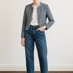 • Cropped silhouette with split back hem for a modern, structured fit