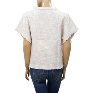 IRO Dorothy Tweed Blouse Top Cotton Cozy Oversized Short Sleeve L-42 New 211023