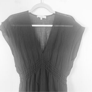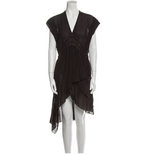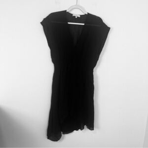 IRO Dress Black Pleated Accents Short Sleeve with V-Neck Size M Sheer