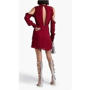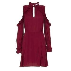 IRO Dress Hanie Red Wine Burgundy Cold Shoulder Ruffle Festival Event NWT $400