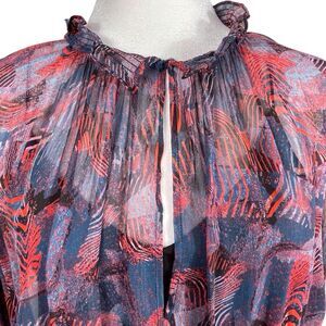 IRO Dress Size 40 (US 8) Abstract Print Red Blue Long Sleeve Ruffle Hem EUC