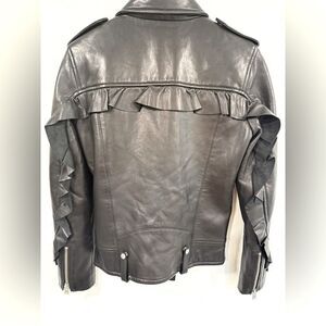 IRO Dumont Motorcycle Ruffle Jacket, Lamb Leather, Black, Size 34 (XS)