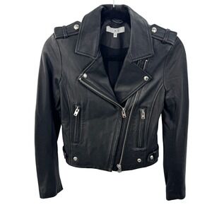 IRO Dylan Leather Moto Jacket 100% Lamb Leather Women's Size 38 Black