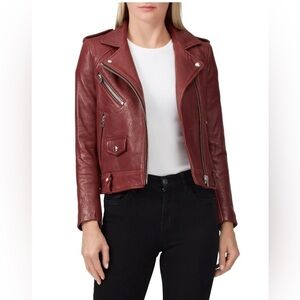 IRO Ebenya moto jacket small red maroon lamb leather biker zipper fall autumn