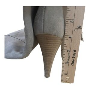 Over-the-knee boots, Suede, Studded, Pull tabs, Stacked heel, Pointed toe, Pull on, Leather sole.