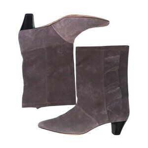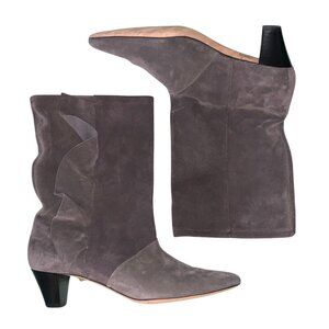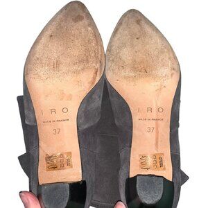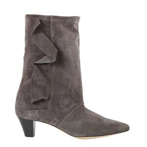 IRO FABITA Grey Suede Booties with Ruffle Detail Womens Size 37 // US 6.5