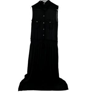 IRO Ferney Blouson Maxi Dress Chiffon Button Front Sleeveless Pocket Black 1 S