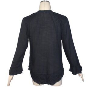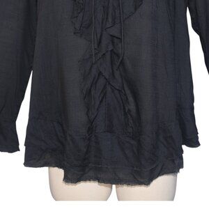 Great blouse from IRO! Lightweight viscose fabric. Ruffles at center and bottom of sleeves. Intentional raw edges at bottom hem and sleeves. Size XS. Bust a little over 37, length approx. 23.5 inches. Excellent condition.